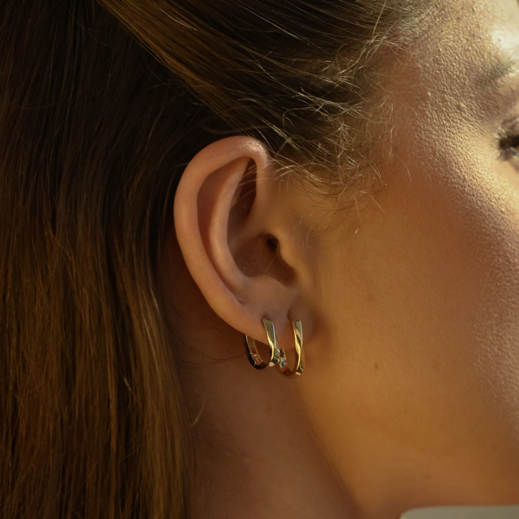 A dupla de argolas prata e dourado é uma combinação elegante e versátil que traz um toque sofisticado ao seu visual.