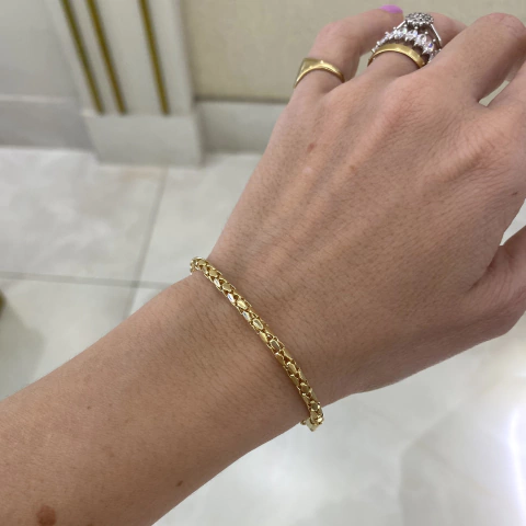 Inspirada na elegância e na força da serpente, a pulseira sanke apresenta um design sinuoso e arrojado que abraça o pulso com um toque de sofisticação. Feita em metal de alta qualidade com banho de ouro, acabamento polido e detalhes intrincados que imitam as escamas de uma cobra, a pulseira é um símbolo de poder e transformação.